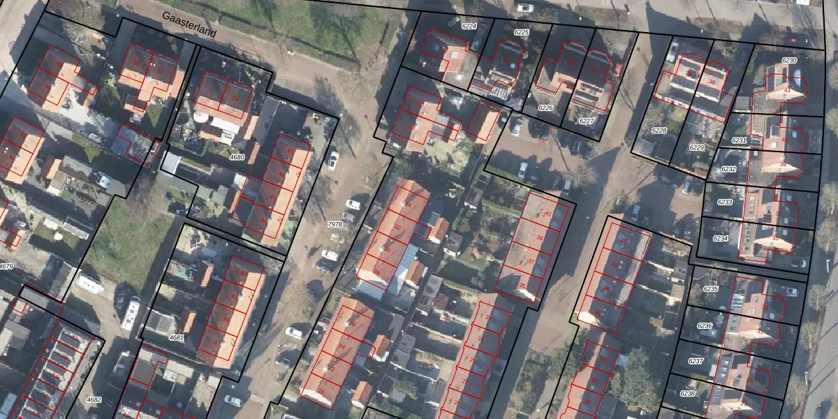 Het perceel waarop Gaasterland 34 staat heeft een oppervlakte van 6540 m². Dit is een zeer groot perceel. De perceeloppervlakte wordt geregistreerd door het Kadaster. Gedetailleerde informatie over de maten van dit perceel kunt u vinden in het rapport Kadastrale kaart met maatvoering van Gaasterland 34.