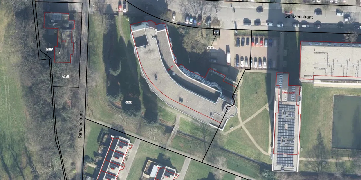 Het perceel waarop Gemzenstraat 107 staat heeft een oppervlakte van 5905 m². Dit is een zeer groot perceel. De perceeloppervlakte wordt geregistreerd door het Kadaster. Gedetailleerde informatie over de maten van dit perceel kunt u vinden in het rapport Kadastrale kaart met maatvoering van Gemzenstraat 107.