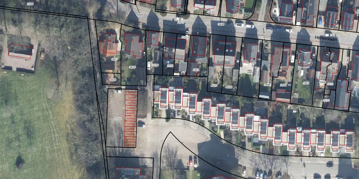 Het perceel waarop Gemzenstraat 110 staat heeft een oppervlakte van 6079 m². Dit is een zeer groot perceel. De perceeloppervlakte wordt geregistreerd door het Kadaster. Gedetailleerde informatie over de maten van dit perceel kunt u vinden in het rapport Kadastrale kaart met maatvoering van Gemzenstraat 110.