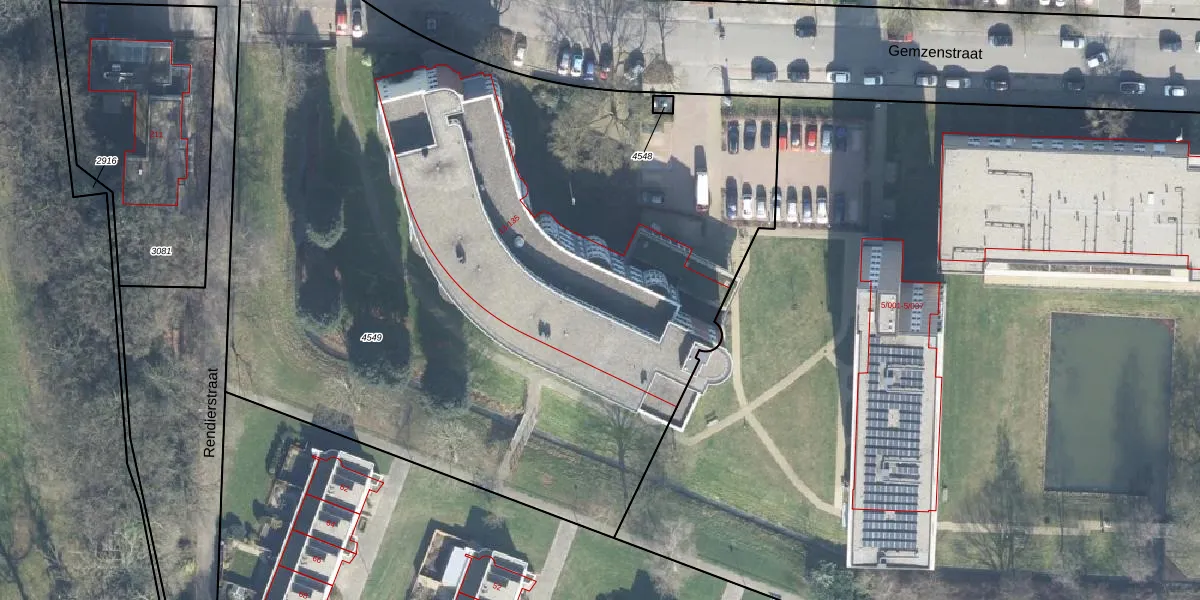 Het perceel waarop Gemzenstraat 45 staat heeft een oppervlakte van 5905 m². Dit is een zeer groot perceel. De perceeloppervlakte wordt geregistreerd door het Kadaster. Gedetailleerde informatie over de maten van dit perceel kunt u vinden in het rapport Kadastrale kaart met maatvoering van Gemzenstraat 45.