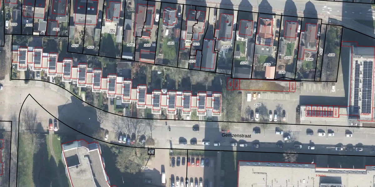 Het perceel waarop Gemzenstraat 90 staat heeft een oppervlakte van 6079 m². Dit is een zeer groot perceel. De perceeloppervlakte wordt geregistreerd door het Kadaster. Gedetailleerde informatie over de maten van dit perceel kunt u vinden in het rapport Kadastrale kaart met maatvoering van Gemzenstraat 90.