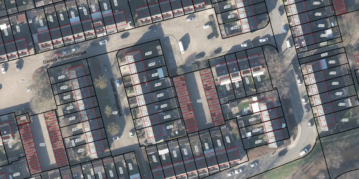 Gerard Terborchstraat 7-G20 is gelegen op kadastraal perceel SRN00W959. Deze kadastrale aanduiding is uniek en wordt gebruikt door het Kadaster om eigendomsrechten en andere zakelijke rechten vast te leggen. Het perceel maakt onderdeel uit van de kadastrale gemeente Hoog Soeren.