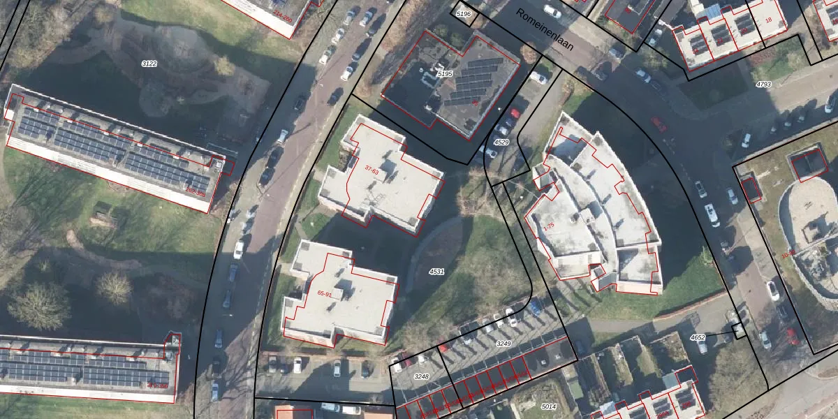 Het perceel waarop Germanenlaan 55 staat heeft een oppervlakte van 3076 m². Dit is een zeer groot perceel. De perceeloppervlakte wordt geregistreerd door het Kadaster. Gedetailleerde informatie over de maten van dit perceel kunt u vinden in het rapport Kadastrale kaart met maatvoering van Germanenlaan 55.
