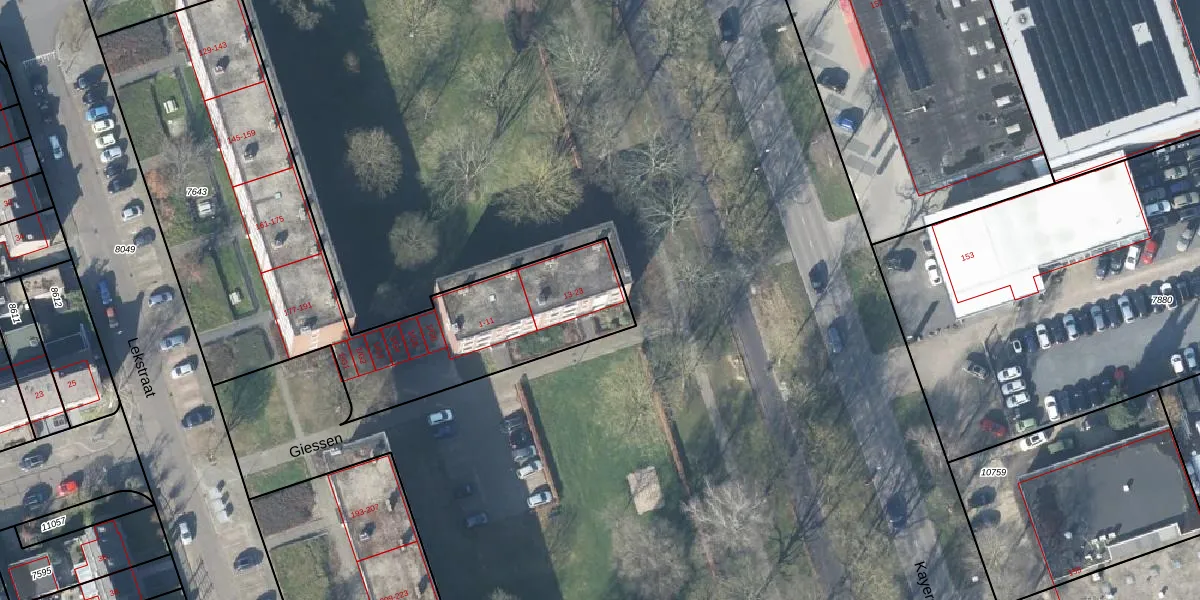 Giessen 13 is gelegen op kadastraal perceel APD01L7643. Deze kadastrale aanduiding is uniek en wordt gebruikt door het Kadaster om eigendomsrechten en andere zakelijke rechten vast te leggen. Het perceel maakt onderdeel uit van de kadastrale gemeente Apeldoorn.