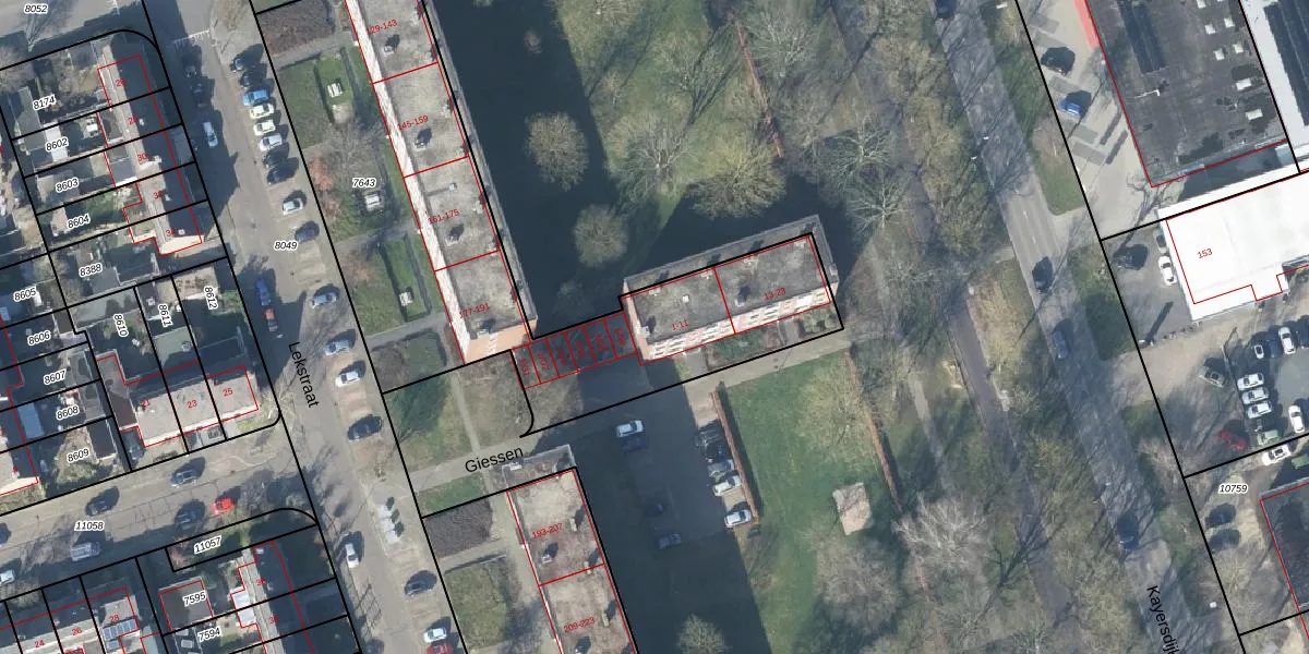 Giessen 7 is gelegen op kadastraal perceel APD01L7643. Deze kadastrale aanduiding is uniek en wordt gebruikt door het Kadaster om eigendomsrechten en andere zakelijke rechten vast te leggen. Het perceel maakt onderdeel uit van de kadastrale gemeente Apeldoorn.