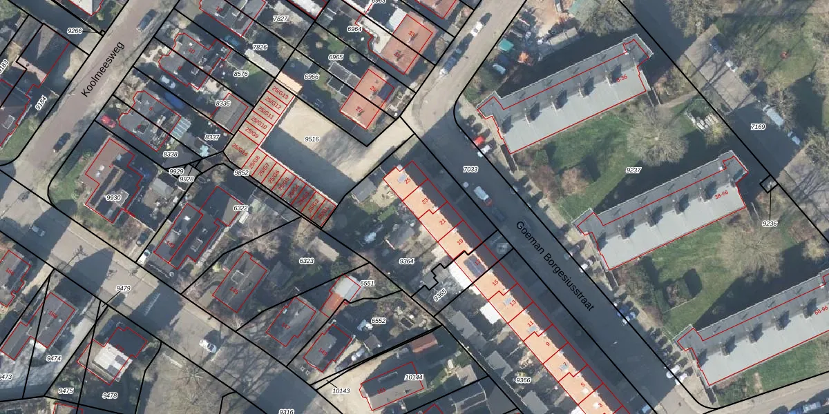 Het perceel waarop Goeman Borgesiusstraat 23 staat heeft een oppervlakte van 859 m². Dit is een groot perceel. De perceeloppervlakte wordt geregistreerd door het Kadaster. Gedetailleerde informatie over de maten van dit perceel kunt u vinden in het rapport Kadastrale kaart met maatvoering van Goeman Borgesiusstraat 23.