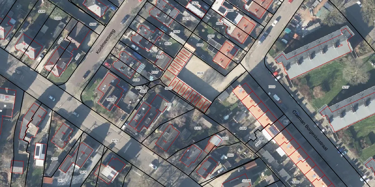 Het perceel waarop Goeman Borgesiusstraat 25-G5 staat heeft een oppervlakte van 733 m². Dit is een groot perceel. De perceeloppervlakte wordt geregistreerd door het Kadaster. Gedetailleerde informatie over de maten van dit perceel kunt u vinden in het rapport Kadastrale kaart met maatvoering van Goeman Borgesiusstraat 25-G5.