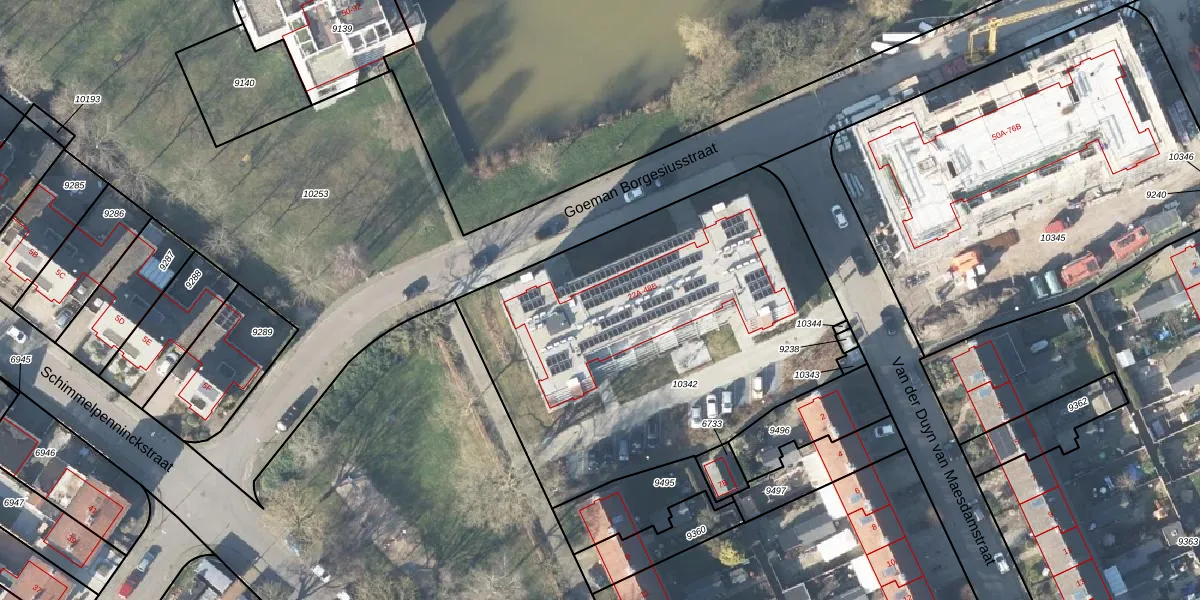 Het perceel waarop Goeman Borgesiusstraat 26-A staat heeft een oppervlakte van 2204 m². Dit is een zeer groot perceel. De perceeloppervlakte wordt geregistreerd door het Kadaster. Gedetailleerde informatie over de maten van dit perceel kunt u vinden in het rapport Kadastrale kaart met maatvoering van Goeman Borgesiusstraat 26-A.