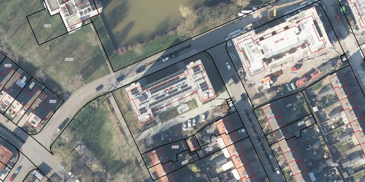 Het perceel waarop Goeman Borgesiusstraat 38-C staat heeft een oppervlakte van 2204 m². Dit is een zeer groot perceel. De perceeloppervlakte wordt geregistreerd door het Kadaster. Gedetailleerde informatie over de maten van dit perceel kunt u vinden in het rapport Kadastrale kaart met maatvoering van Goeman Borgesiusstraat 38-C.
