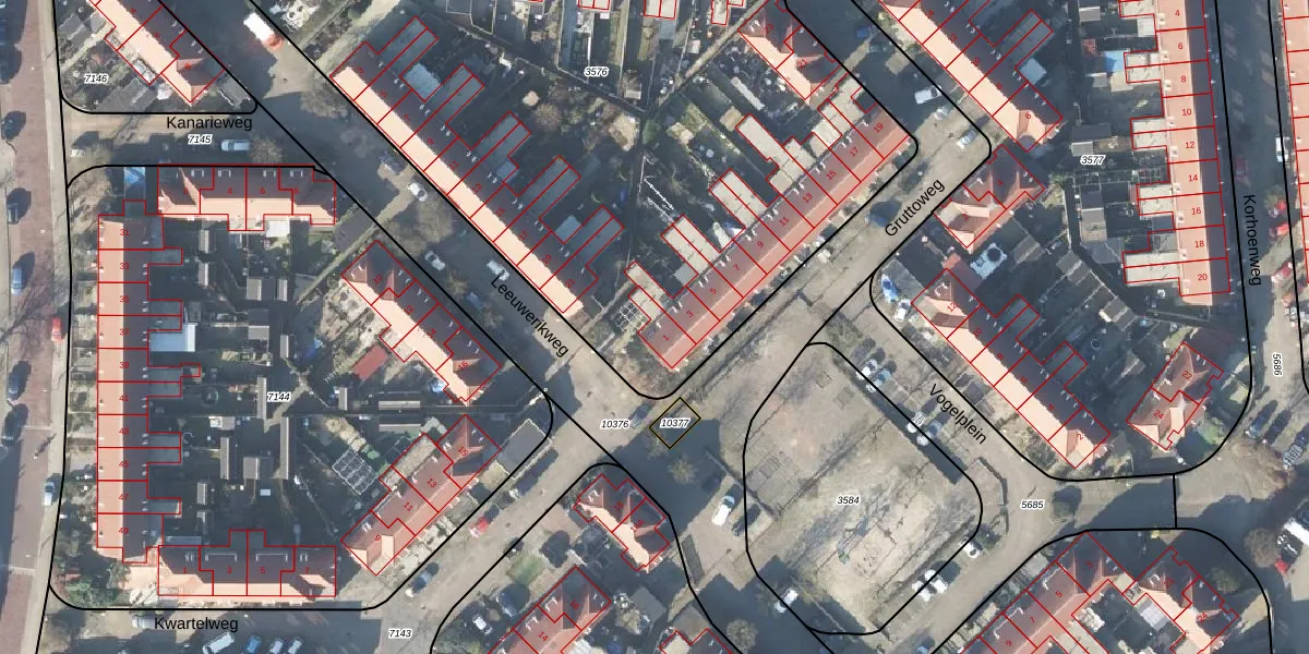Het perceel waarop Gruttoweg 1 staat heeft een oppervlakte van 5420 m². Dit is een zeer groot perceel. De perceeloppervlakte wordt geregistreerd door het Kadaster. Gedetailleerde informatie over de maten van dit perceel kunt u vinden in het rapport Kadastrale kaart met maatvoering van Gruttoweg 1.