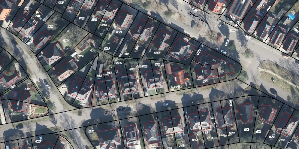 Het perceel waarop Gunninglaan 10 staat heeft een oppervlakte van 215 m². Dit is een middelgroot perceel. De perceeloppervlakte wordt geregistreerd door het Kadaster. Gedetailleerde informatie over de maten van dit perceel kunt u vinden in het rapport Kadastrale kaart met maatvoering van Gunninglaan 10.