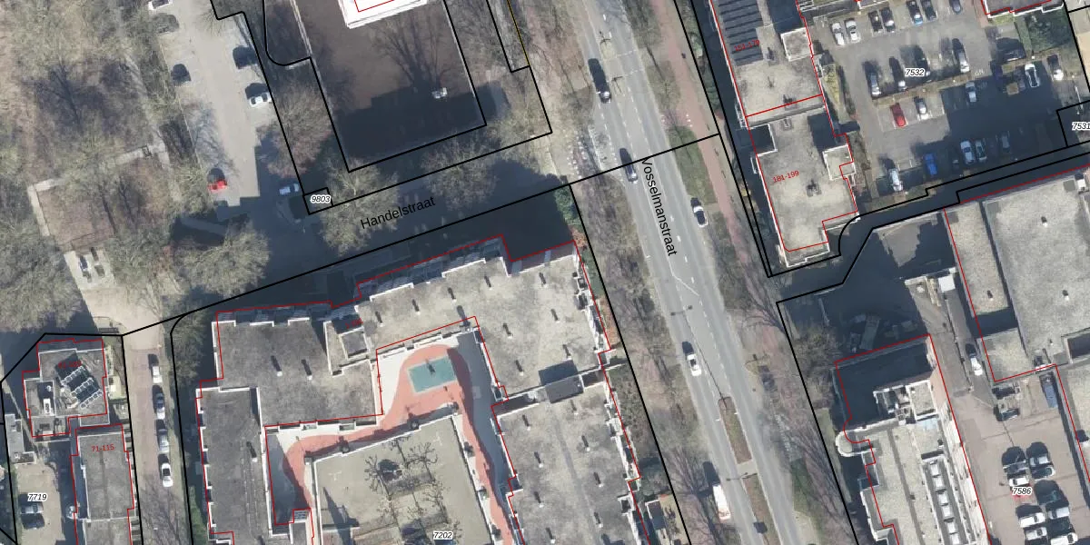 Het perceel waarop Handelstraat 135 staat heeft een oppervlakte van 8195 m². Dit is een zeer groot perceel. De perceeloppervlakte wordt geregistreerd door het Kadaster. Gedetailleerde informatie over de maten van dit perceel kunt u vinden in het rapport Kadastrale kaart met maatvoering van Handelstraat 135.