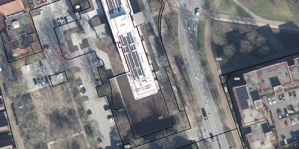 Het perceel waarop het adres ligt is APD01-U-6694. De afkorting 'APD01' staat voor kadastrale gemeente Apeldoorn. De gemiddelde perceelgrootte in Apeldoorn is 3523,48 m². Dit perceel is kleiner: de perceeloppervlakte bedraagt 2167 m². De grootste perceeloppervlakte in de kadastrale gemeente is 4,54 km². De kleinste oppervlakte bedraagt 0 m². Er zijn 95 adressen aanwezig op het perceel. In de Basisregistratie Kadaster (BRK) werden de grenzen van het perceel geregistreerd op 11-02-1999.