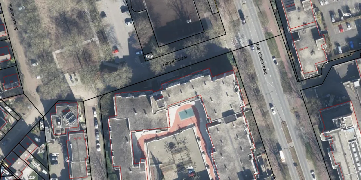 Het perceel waarop Handelstraat 177 staat heeft een oppervlakte van 8195 m². Dit is een zeer groot perceel. De perceeloppervlakte wordt geregistreerd door het Kadaster. Gedetailleerde informatie over de maten van dit perceel kunt u vinden in het rapport Kadastrale kaart met maatvoering van Handelstraat 177.