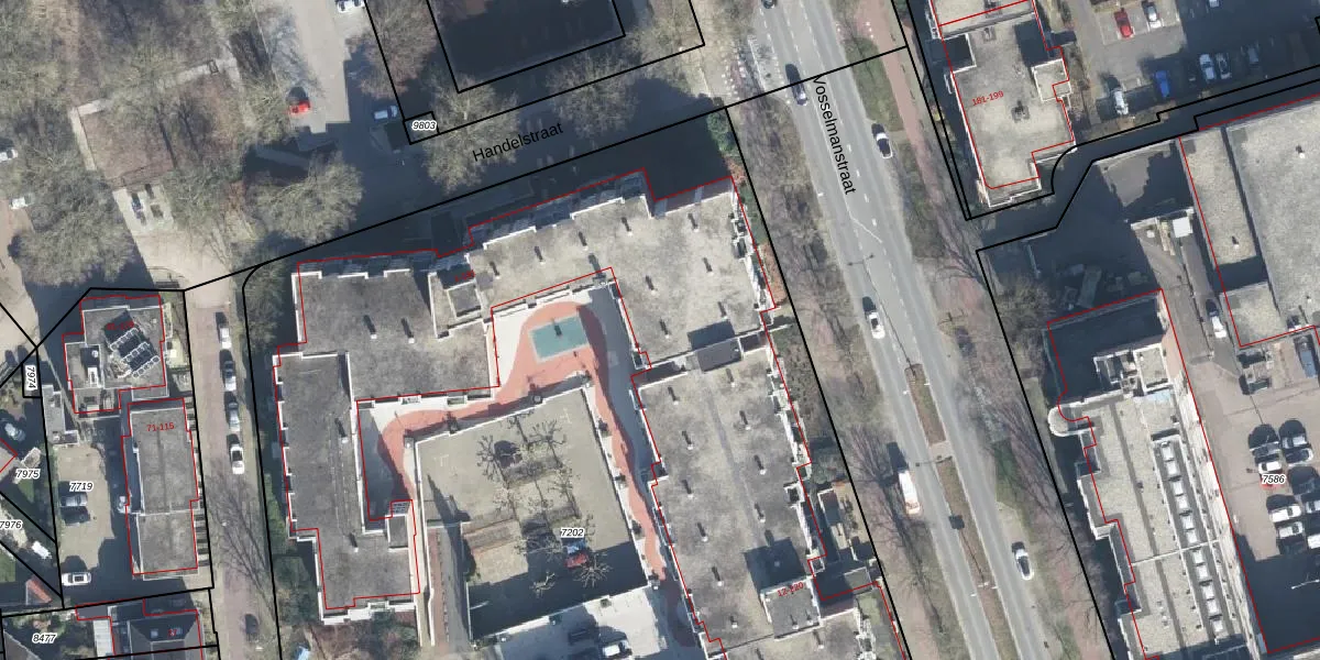 Het perceel waarop Handelstraat 57 staat heeft een oppervlakte van 8195 m². Dit is een zeer groot perceel. De perceeloppervlakte wordt geregistreerd door het Kadaster. Gedetailleerde informatie over de maten van dit perceel kunt u vinden in het rapport Kadastrale kaart met maatvoering van Handelstraat 57.