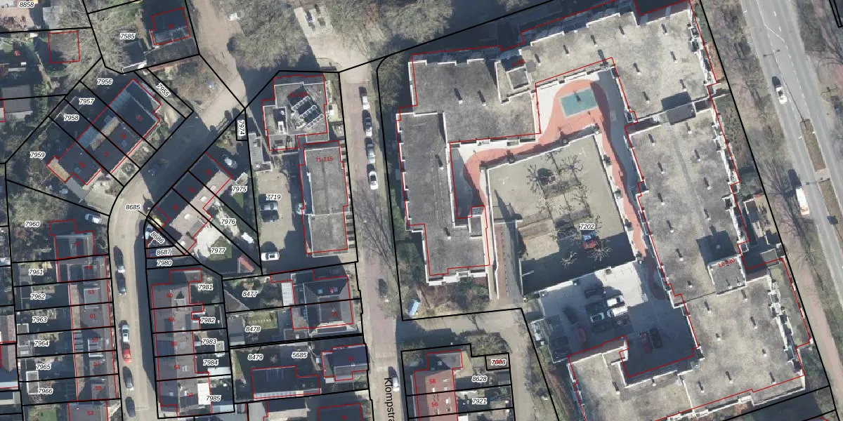 Het perceel waarop Handelstraat 71 staat heeft een oppervlakte van 8195 m². Dit is een zeer groot perceel. De perceeloppervlakte wordt geregistreerd door het Kadaster. Gedetailleerde informatie over de maten van dit perceel kunt u vinden in het rapport Kadastrale kaart met maatvoering van Handelstraat 71.
