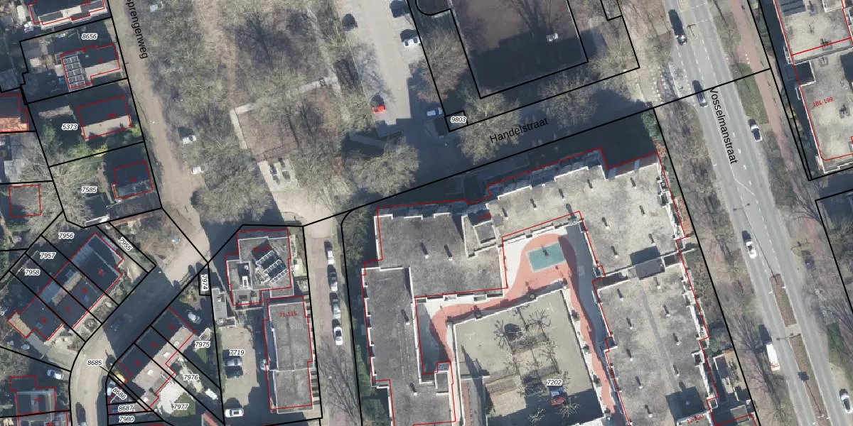 Het perceel waarop Handelstraat 81 staat heeft een oppervlakte van 8195 m². Dit is een zeer groot perceel. De perceeloppervlakte wordt geregistreerd door het Kadaster. Gedetailleerde informatie over de maten van dit perceel kunt u vinden in het rapport Kadastrale kaart met maatvoering van Handelstraat 81.