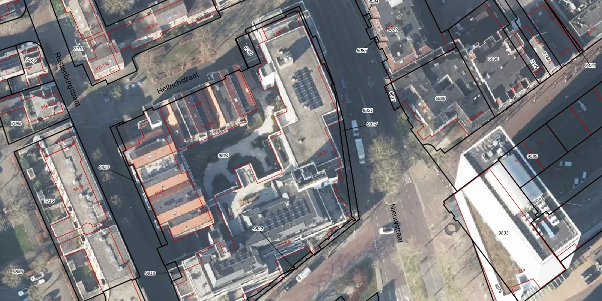 Het perceel waarop Helfrichstraat 25-J staat heeft een oppervlakte van 4719 m². Dit is een zeer groot perceel. De perceeloppervlakte wordt geregistreerd door het Kadaster. Gedetailleerde informatie over de maten van dit perceel kunt u vinden in het rapport Kadastrale kaart met maatvoering van Helfrichstraat 25-J.