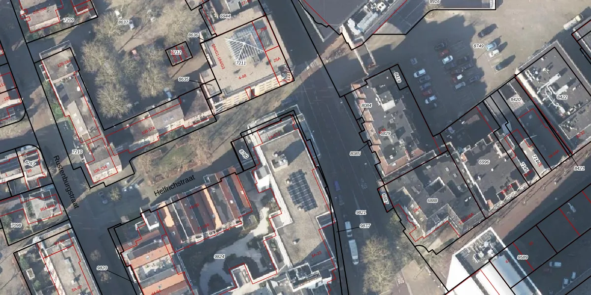 Het perceel waarop Helfrichstraat 3 staat heeft een oppervlakte van 4719 m². Dit is een zeer groot perceel. De perceeloppervlakte wordt geregistreerd door het Kadaster. Gedetailleerde informatie over de maten van dit perceel kunt u vinden in het rapport Kadastrale kaart met maatvoering van Helfrichstraat 3.