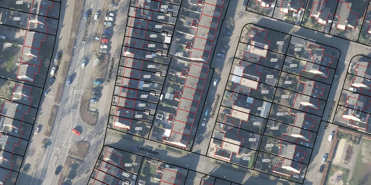 Het perceel waarop Heliosstraat 33 staat heeft een oppervlakte van 2270 m². Dit is een zeer groot perceel. De perceeloppervlakte wordt geregistreerd door het Kadaster. Gedetailleerde informatie over de maten van dit perceel kunt u vinden in het rapport Kadastrale kaart met maatvoering van Heliosstraat 33.