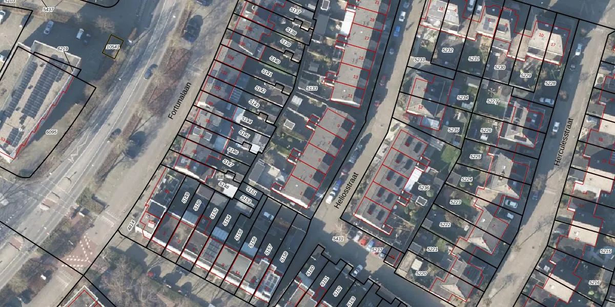 Het perceel waarop Heliosstraat 5 staat heeft een oppervlakte van 2150 m². Dit is een zeer groot perceel. De perceeloppervlakte wordt geregistreerd door het Kadaster. Gedetailleerde informatie over de maten van dit perceel kunt u vinden in het rapport Kadastrale kaart met maatvoering van Heliosstraat 5.