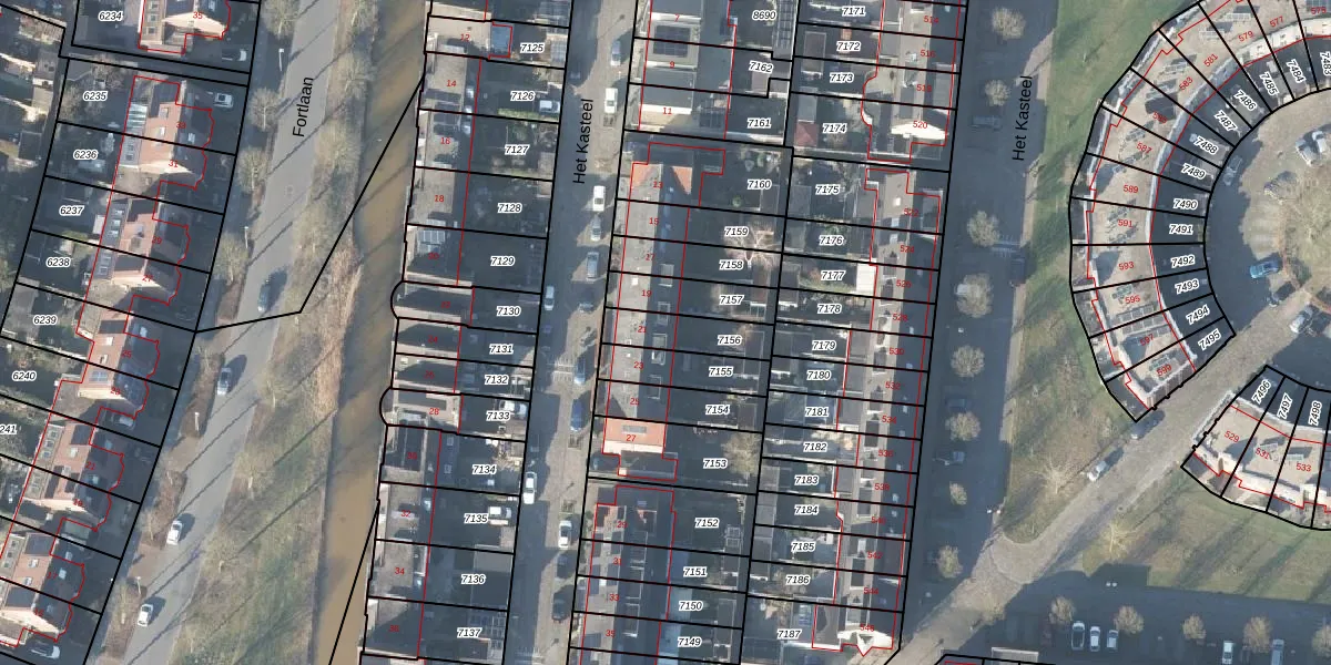 Het perceel waarop Het Kasteel 21 staat heeft een oppervlakte van 140 m². Dit is een middelgroot perceel. De perceeloppervlakte wordt geregistreerd door het Kadaster. Gedetailleerde informatie over de maten van dit perceel kunt u vinden in het rapport Kadastrale kaart met maatvoering van Het Kasteel 21.