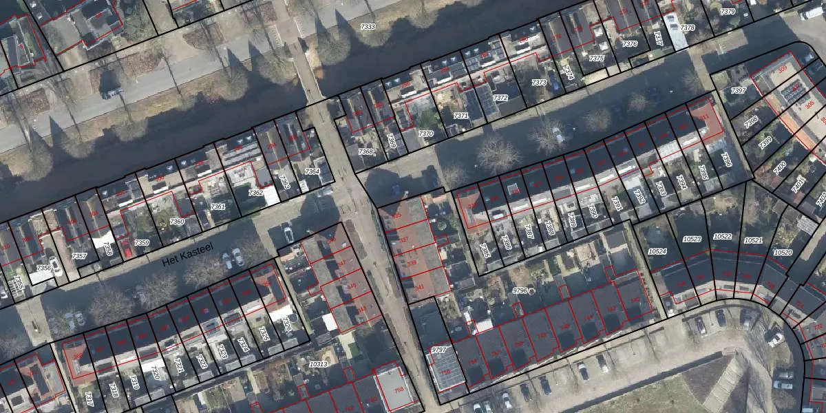 Het perceel waarop Het Kasteel 335 staat heeft een oppervlakte van 1751 m². Dit is een zeer groot perceel. De perceeloppervlakte wordt geregistreerd door het Kadaster. Gedetailleerde informatie over de maten van dit perceel kunt u vinden in het rapport Kadastrale kaart met maatvoering van Het Kasteel 335.