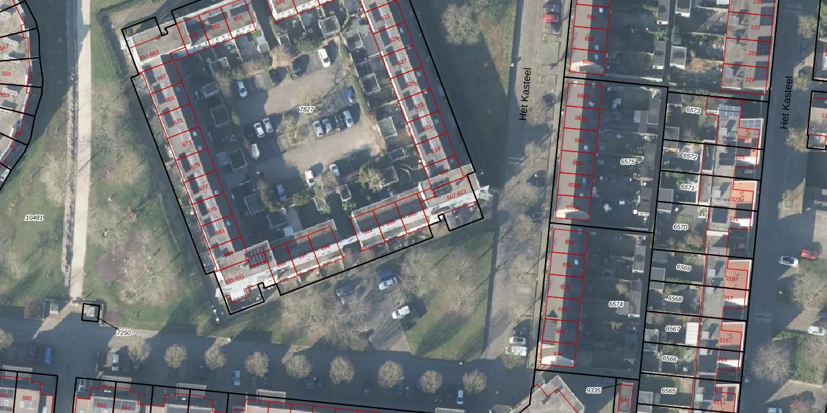 Het perceel waarop Het Kasteel 605 staat heeft een oppervlakte van 4987 m². Dit is een zeer groot perceel. De perceeloppervlakte wordt geregistreerd door het Kadaster. Gedetailleerde informatie over de maten van dit perceel kunt u vinden in het rapport Kadastrale kaart met maatvoering van Het Kasteel 605.