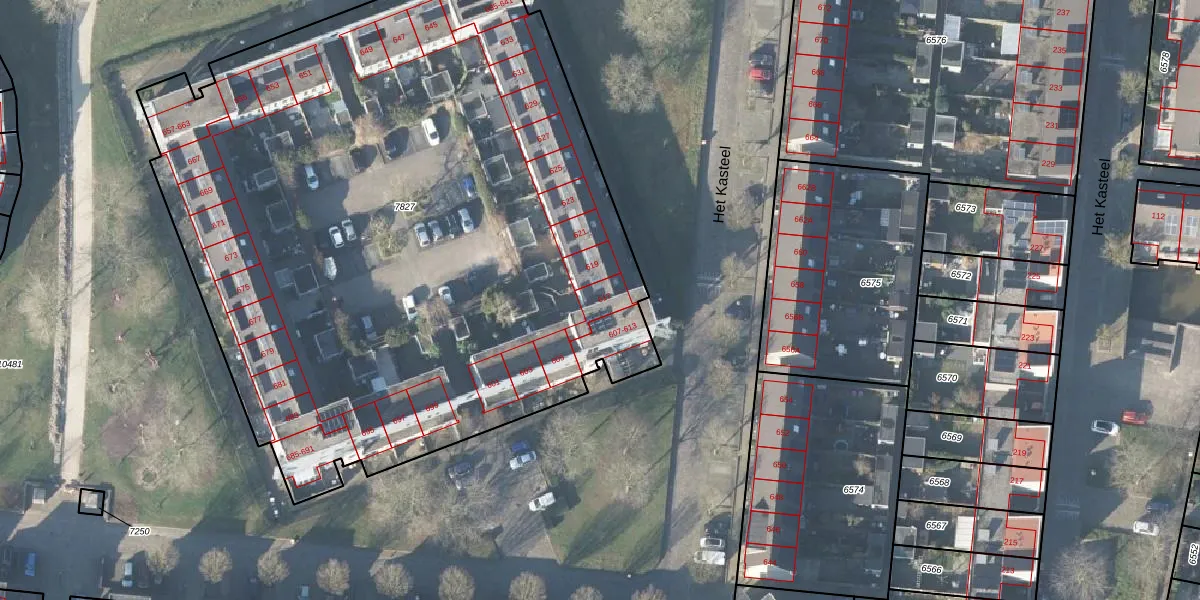 Het perceel waarop Het Kasteel 617 staat heeft een oppervlakte van 4987 m². Dit is een zeer groot perceel. De perceeloppervlakte wordt geregistreerd door het Kadaster. Gedetailleerde informatie over de maten van dit perceel kunt u vinden in het rapport Kadastrale kaart met maatvoering van Het Kasteel 617.