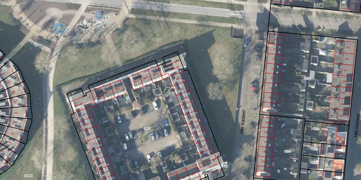 Het perceel waarop Het Kasteel 631 staat heeft een oppervlakte van 4987 m². Dit is een zeer groot perceel. De perceeloppervlakte wordt geregistreerd door het Kadaster. Gedetailleerde informatie over de maten van dit perceel kunt u vinden in het rapport Kadastrale kaart met maatvoering van Het Kasteel 631.