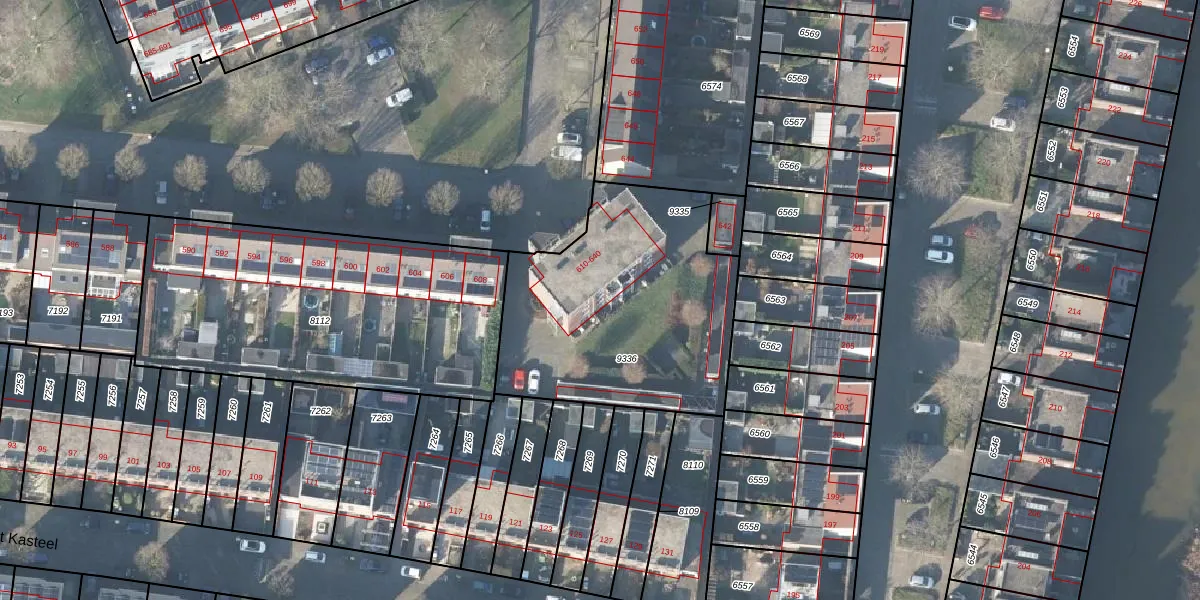 Het perceel waarop Het Kasteel 636 staat heeft een oppervlakte van 1202 m². Dit is een zeer groot perceel. De perceeloppervlakte wordt geregistreerd door het Kadaster. Gedetailleerde informatie over de maten van dit perceel kunt u vinden in het rapport Kadastrale kaart met maatvoering van Het Kasteel 636.