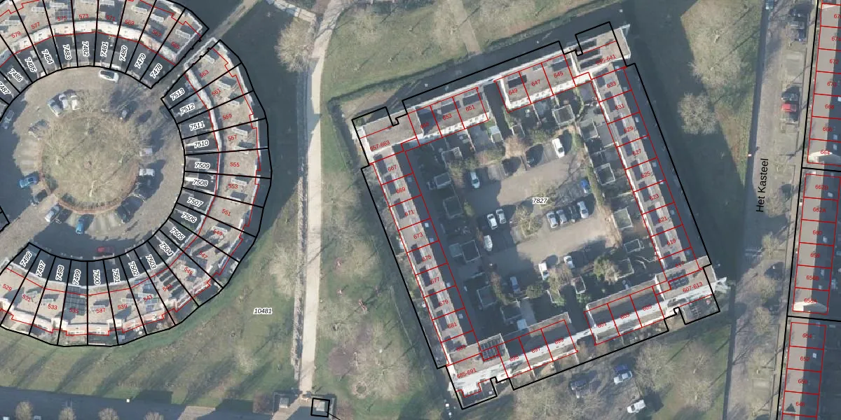 Het perceel waarop Het Kasteel 671 staat heeft een oppervlakte van 4987 m². Dit is een zeer groot perceel. De perceeloppervlakte wordt geregistreerd door het Kadaster. Gedetailleerde informatie over de maten van dit perceel kunt u vinden in het rapport Kadastrale kaart met maatvoering van Het Kasteel 671.