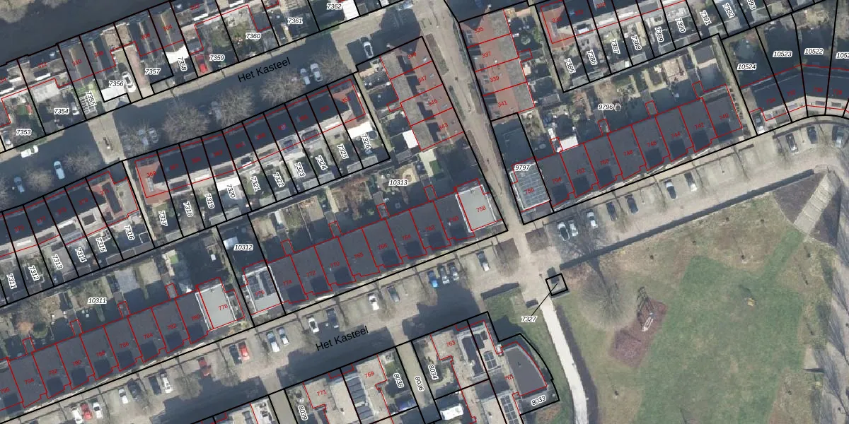 Het perceel waarop Het Kasteel 762 staat heeft een oppervlakte van 1861 m². Dit is een zeer groot perceel. De perceeloppervlakte wordt geregistreerd door het Kadaster. Gedetailleerde informatie over de maten van dit perceel kunt u vinden in het rapport Kadastrale kaart met maatvoering van Het Kasteel 762.