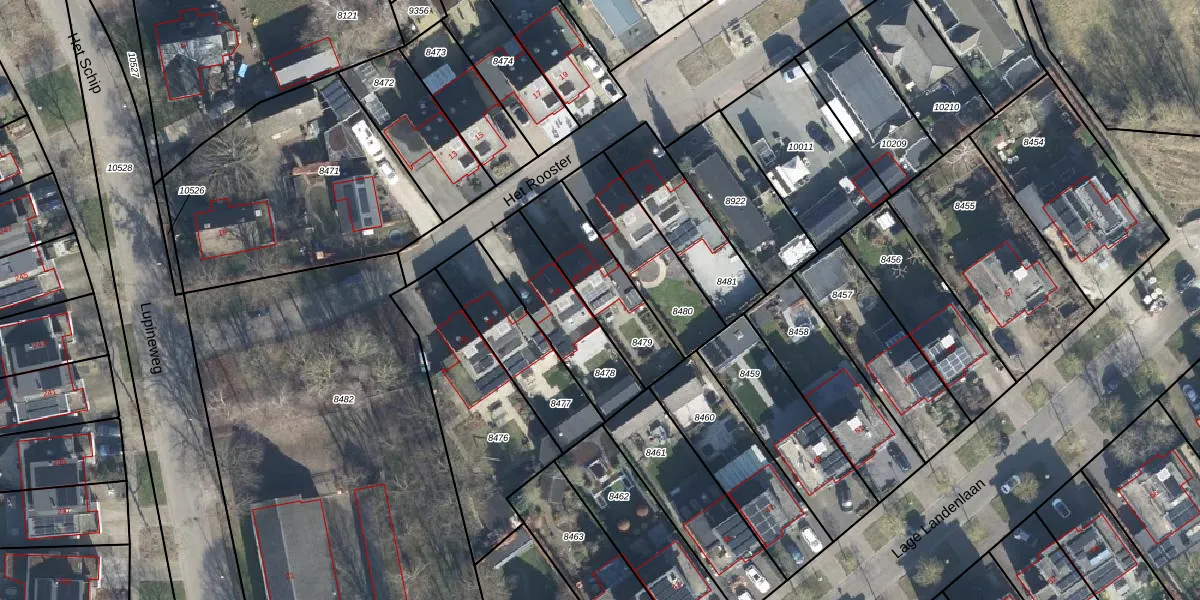 Het perceel waarop Het Rooster 16 staat heeft een oppervlakte van 308 m². Dit is een groot perceel. De perceeloppervlakte wordt geregistreerd door het Kadaster. Gedetailleerde informatie over de maten van dit perceel kunt u vinden in het rapport Kadastrale kaart met maatvoering van Het Rooster 16.