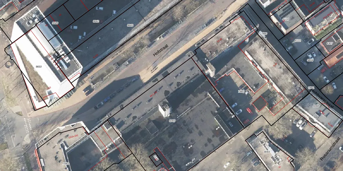 Het perceel waarop Hofstraat 53 staat heeft een oppervlakte van 3131 m². Dit is een zeer groot perceel. De perceeloppervlakte wordt geregistreerd door het Kadaster. Gedetailleerde informatie over de maten van dit perceel kunt u vinden in het rapport Kadastrale kaart met maatvoering van Hofstraat 53.