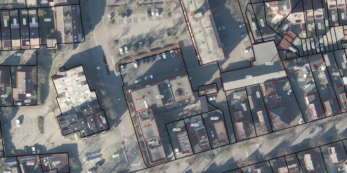 Het perceel waarop Hoge Dries 433 staat heeft een oppervlakte van 1987 m². Dit is een zeer groot perceel. De perceeloppervlakte wordt geregistreerd door het Kadaster. Gedetailleerde informatie over de maten van dit perceel kunt u vinden in het rapport Kadastrale kaart met maatvoering van Hoge Dries 433.