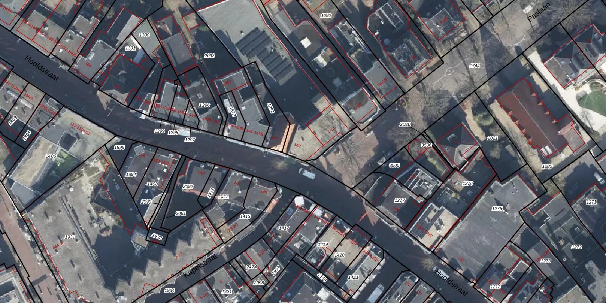 Het perceel waarop Hoofdstraat 142 staat heeft een oppervlakte van 1402 m². Dit is een zeer groot perceel. De perceeloppervlakte wordt geregistreerd door het Kadaster. Gedetailleerde informatie over de maten van dit perceel kunt u vinden in het rapport Kadastrale kaart met maatvoering van Hoofdstraat 142.