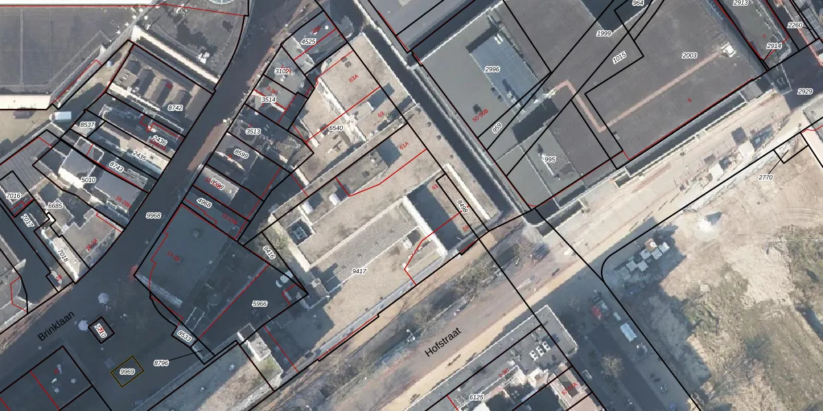 Het perceel waarop Hoofdstraat 61 staat heeft een oppervlakte van 1723 m². Dit is een zeer groot perceel. De perceeloppervlakte wordt geregistreerd door het Kadaster. Gedetailleerde informatie over de maten van dit perceel kunt u vinden in het rapport Kadastrale kaart met maatvoering van Hoofdstraat 61.