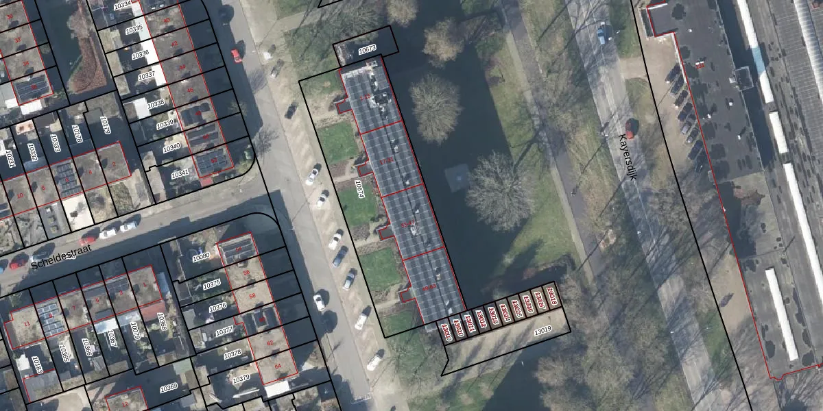 Het perceel waarop IJsselstraat 43 staat heeft een oppervlakte van 1379 m². Dit is een zeer groot perceel. De perceeloppervlakte wordt geregistreerd door het Kadaster. Gedetailleerde informatie over de maten van dit perceel kunt u vinden in het rapport Kadastrale kaart met maatvoering van IJsselstraat 43.