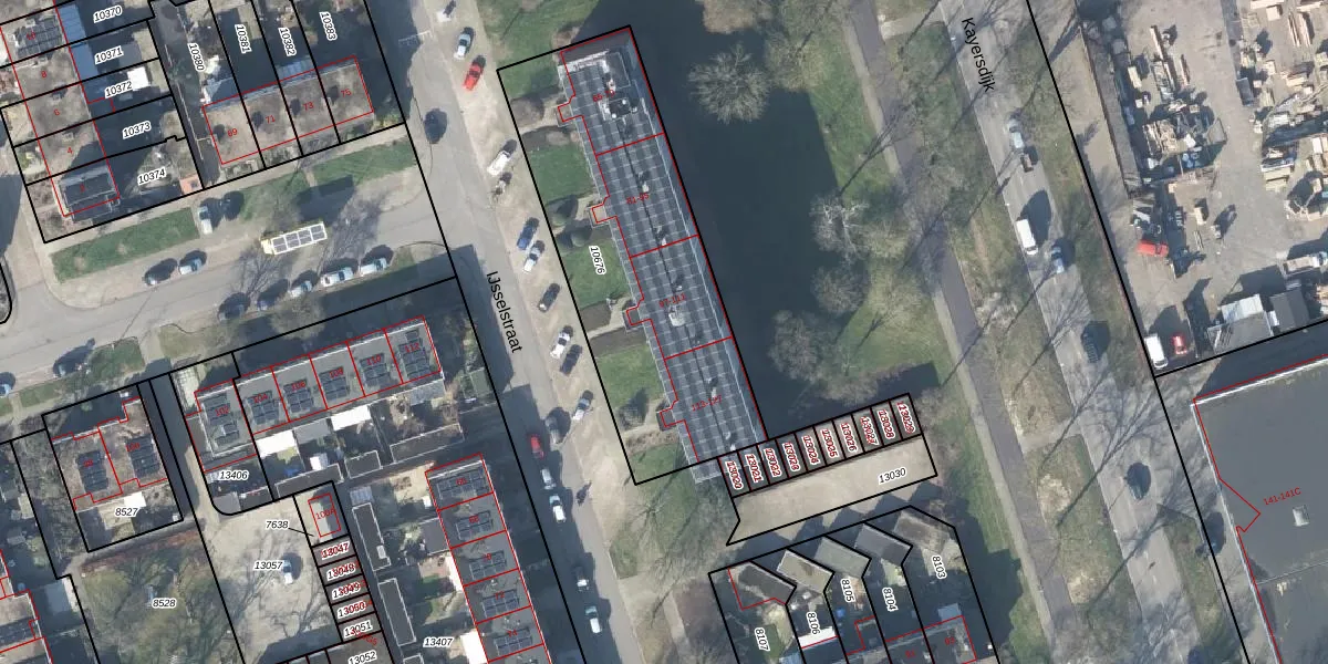 Het perceel waarop IJsselstraat 97 staat heeft een oppervlakte van 1390 m². Dit is een zeer groot perceel. De perceeloppervlakte wordt geregistreerd door het Kadaster. Gedetailleerde informatie over de maten van dit perceel kunt u vinden in het rapport Kadastrale kaart met maatvoering van IJsselstraat 97.
