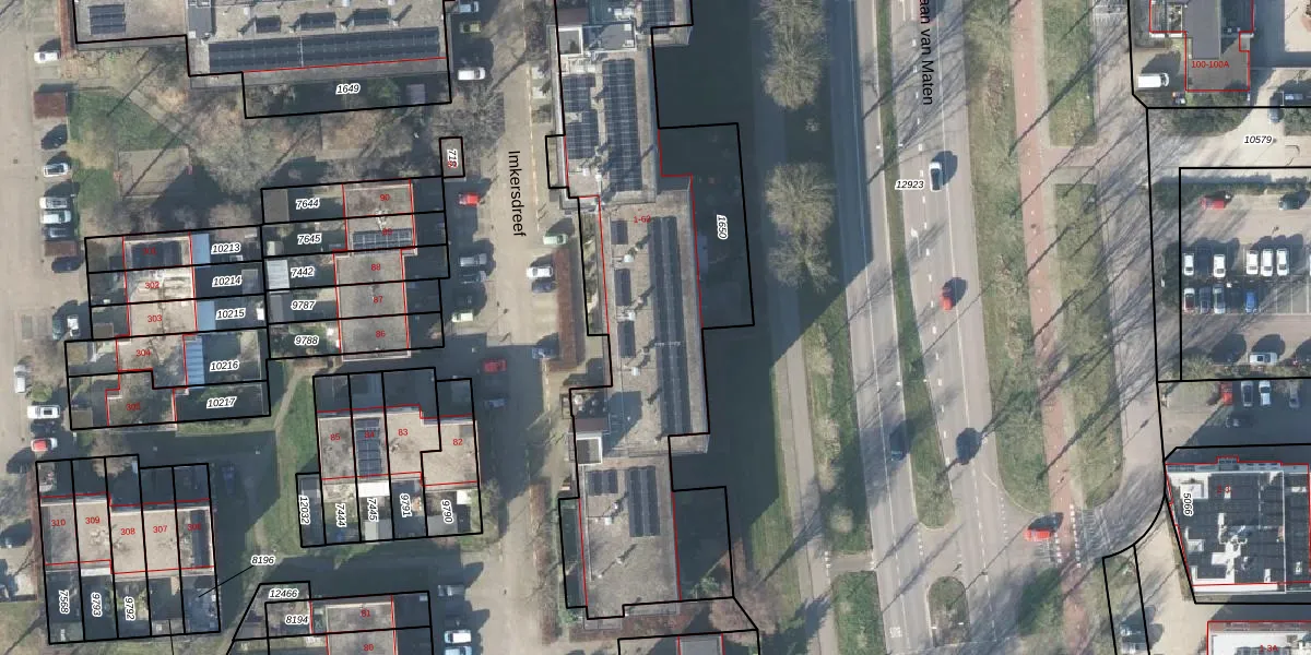 Het perceel waarop Imkersdreef 53 staat heeft een oppervlakte van 2172 m². Dit is een zeer groot perceel. De perceeloppervlakte wordt geregistreerd door het Kadaster. Gedetailleerde informatie over de maten van dit perceel kunt u vinden in het rapport Kadastrale kaart met maatvoering van Imkersdreef 53.