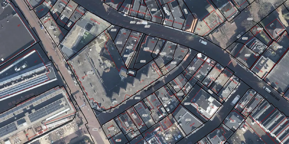 Het perceel waarop Kapelstraat 12 staat heeft een oppervlakte van 1854 m². Dit is een zeer groot perceel. De perceeloppervlakte wordt geregistreerd door het Kadaster. Gedetailleerde informatie over de maten van dit perceel kunt u vinden in het rapport Kadastrale kaart met maatvoering van Kapelstraat 12.