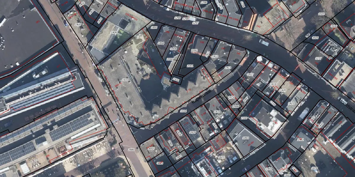 Het perceel waarop Kapelstraat 16 staat heeft een oppervlakte van 1854 m². Dit is een zeer groot perceel. De perceeloppervlakte wordt geregistreerd door het Kadaster. Gedetailleerde informatie over de maten van dit perceel kunt u vinden in het rapport Kadastrale kaart met maatvoering van Kapelstraat 16.