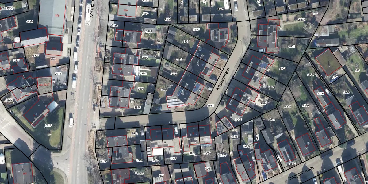 Het perceel waarop Keplerstraat 3 staat heeft een oppervlakte van 388 m². Dit is een groot perceel. De perceeloppervlakte wordt geregistreerd door het Kadaster. Gedetailleerde informatie over de maten van dit perceel kunt u vinden in het rapport Kadastrale kaart met maatvoering van Keplerstraat 3.
