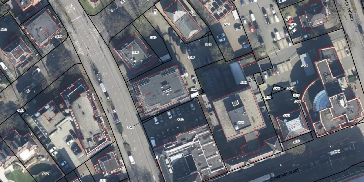 Het adres is gelegen op perceel 2059 in de sectie AA en de kadastrale gemeente Apeldoorn. De kadastrale aanduiding is aldus APD01-AA-2059. Het perceel is kleiner dan gemiddeld in Apeldoorn. Het perceel is 1430 m² groot, terwijl het gemiddelde ligt op 3523,3 m². Het kleinste perceel in de kadastrale gemeente is 0 m² groot. De grootste perceeloppervlakte is 4,54 km². Er zijn 14 adressen aanwezig op het perceel. In de Basisregistratie Kadaster (BRK) werden de grenzen van het perceel geregistreerd op 19-03-2008.