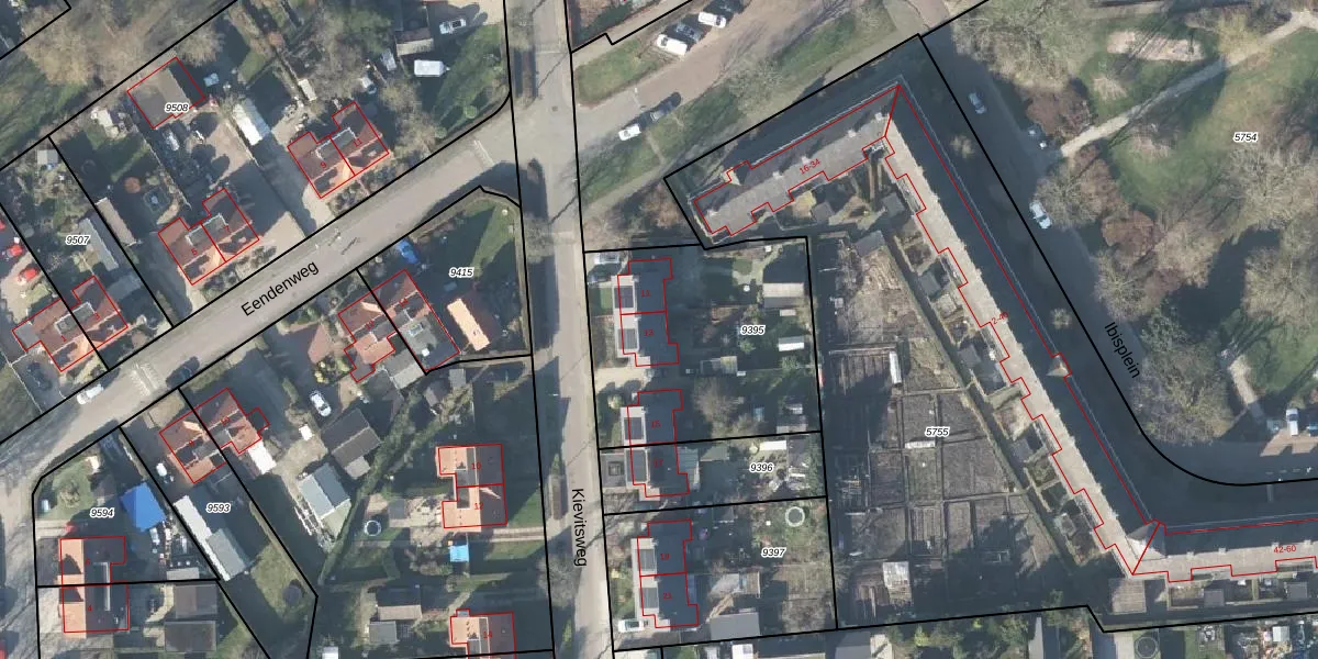 Het perceel waarop Kievitsweg 13 staat heeft een oppervlakte van 1020 m². Dit is een zeer groot perceel. De perceeloppervlakte wordt geregistreerd door het Kadaster. Gedetailleerde informatie over de maten van dit perceel kunt u vinden in het rapport Kadastrale kaart met maatvoering van Kievitsweg 13.