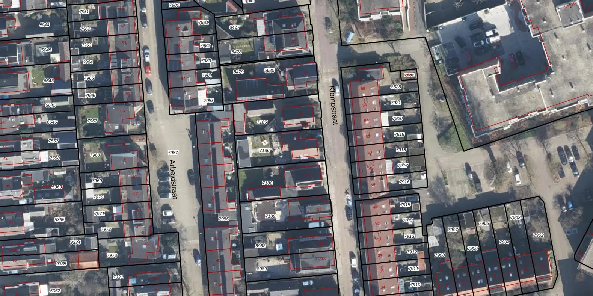 Gebruik de zoekbalk of klik op een perceel voor informatie over de adressen binnen dit perceel.