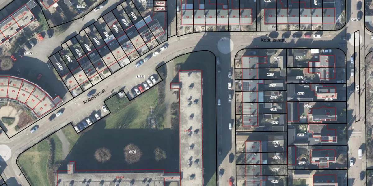 Het perceel waarop Kobaltstraat 39 staat heeft een oppervlakte van 6645 m². Dit is een zeer groot perceel. De perceeloppervlakte wordt geregistreerd door het Kadaster. Gedetailleerde informatie over de maten van dit perceel kunt u vinden in het rapport Kadastrale kaart met maatvoering van Kobaltstraat 39.