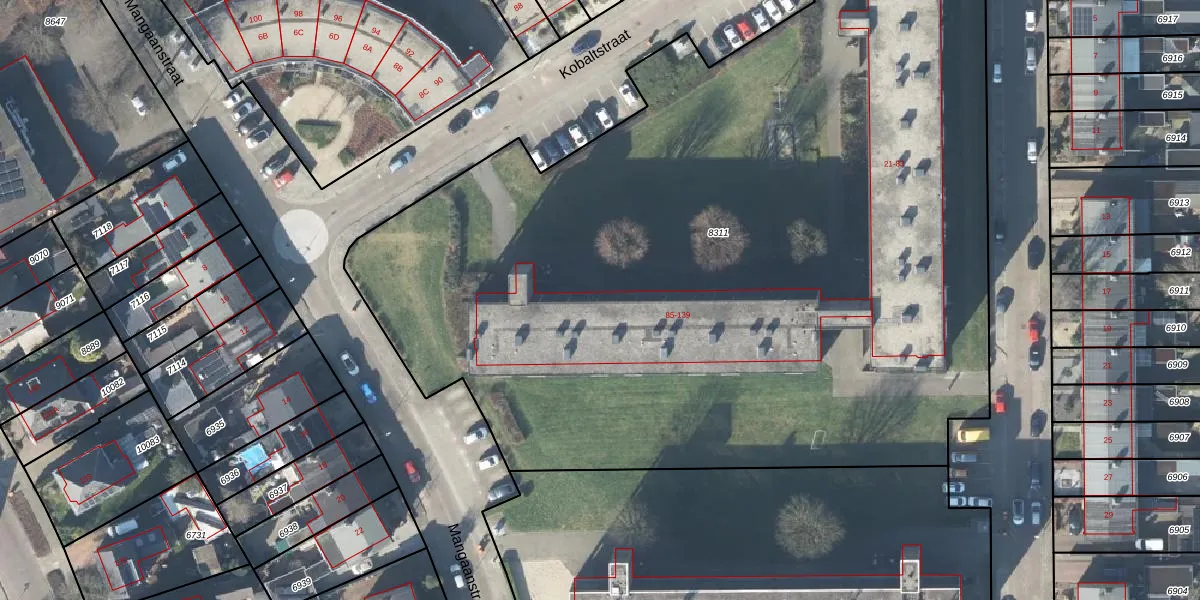 Het perceel waarop Kobaltstraat 93 staat heeft een oppervlakte van 6645 m². Dit is een zeer groot perceel. De perceeloppervlakte wordt geregistreerd door het Kadaster. Gedetailleerde informatie over de maten van dit perceel kunt u vinden in het rapport Kadastrale kaart met maatvoering van Kobaltstraat 93.