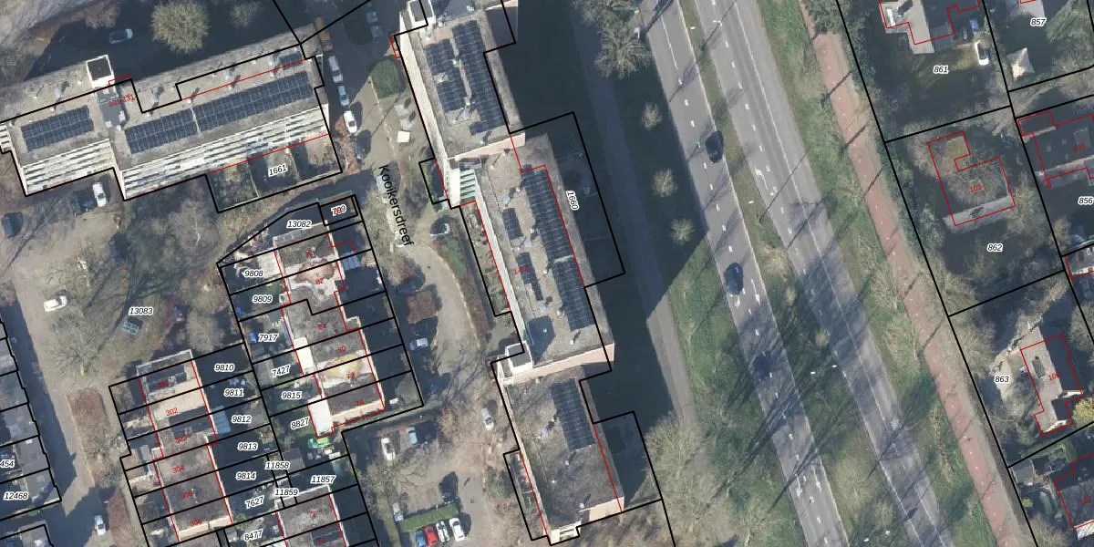Het perceel waarop Kooikersdreef 57 staat heeft een oppervlakte van 2150 m². Dit is een zeer groot perceel. De perceeloppervlakte wordt geregistreerd door het Kadaster. Gedetailleerde informatie over de maten van dit perceel kunt u vinden in het rapport Kadastrale kaart met maatvoering van Kooikersdreef 57.
